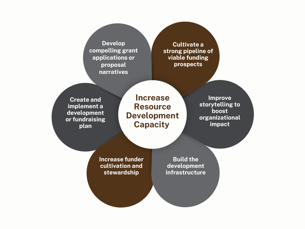 By first understanding your organization’s precise needs, we create a unique fundraising strategy, funder pipeline, and build capacity support your mission, grow your social impact, and build financial sustainability.
